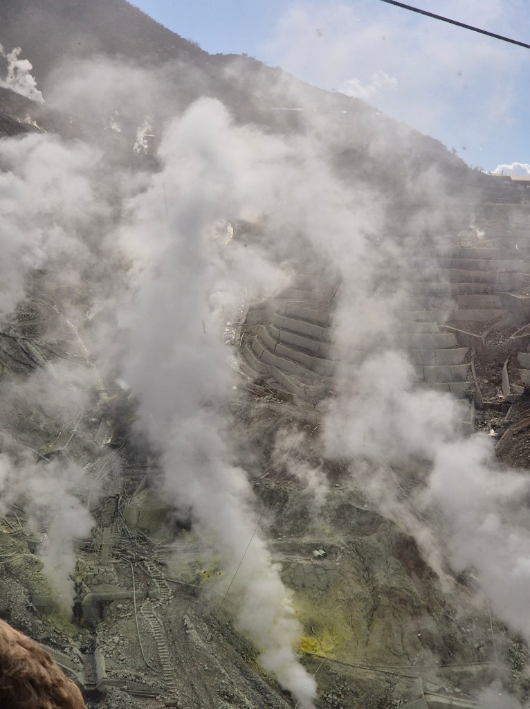 On to a working sulphur mine by cable car where you could buy eggs cooked in the sulphurous waters, we declined!