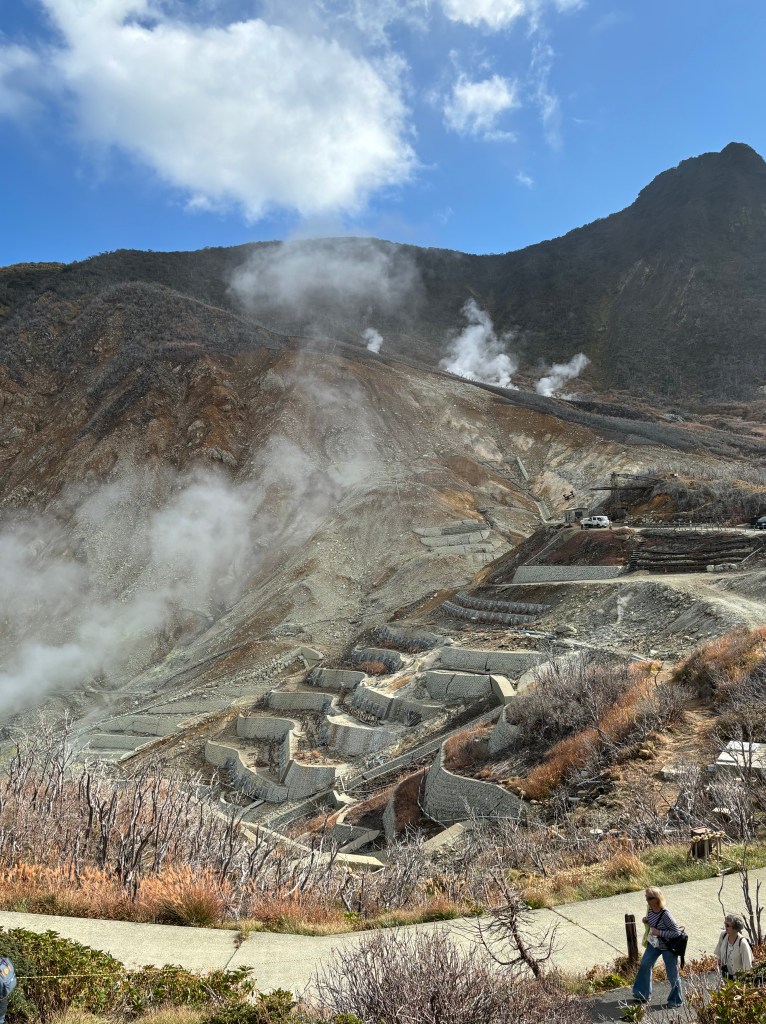 Time to move on. We went by bullet train to Hanoke, a hot springs area where Keiko used to take the FEPOWs and situated relatively close to Mount Fuji.. She had told me how relaxing and comfortable the Hotel de Yama was and we got our initiation into the world of Japanese etiquette. First, remove outside shoes and wear slippers in the main areas. When you get to your room, there is a hallway, remove slippers and be in bare feet or socks in the living/bedroom area. If you go to the bathroom, remember to put on your toilet slippers.