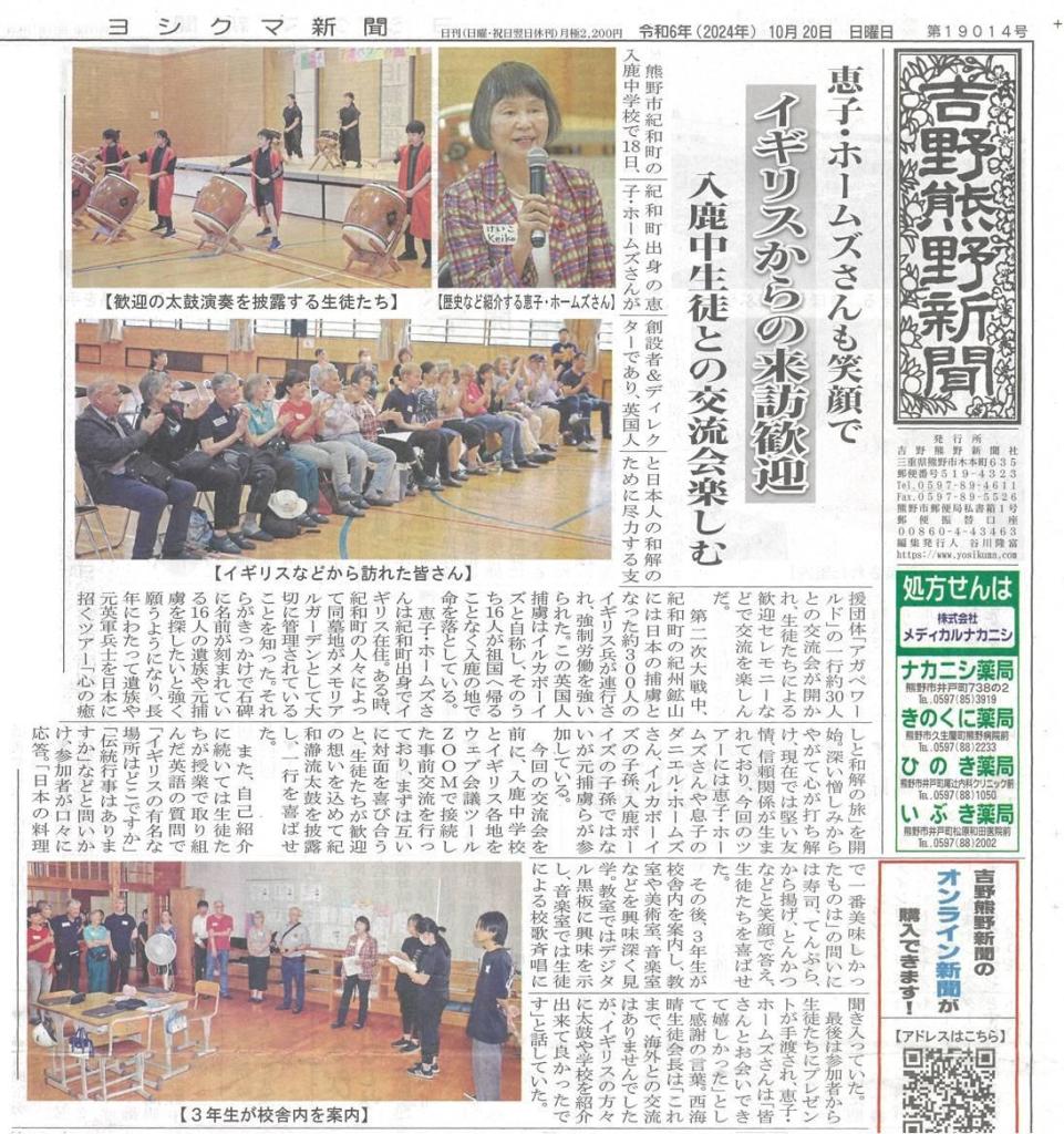 The former British soldiers, the Iruka Boys, invited by the love and kindness of the people, visited Iruka for the first time in 47 years, held a memorial service for their fallen friends, and offered a heartfelt prayer, pledging friendship between Japan and the UK and world peace together.