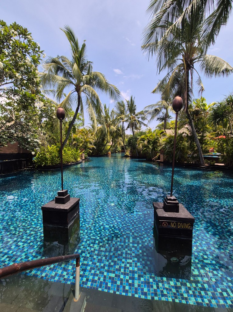 In religious terms Bali is a unique part of Indonesia, being primarily Hindu, whereas the rest of the country is Islamic; the history of this is somewhat convoluted but can be read about here. We’d heard about problems with traffic congestion but really wanted to escape the ship overnight so we booked a resort to the south of the port and spent a lovely 26 hours there, escaping from the rigours of being on a cruise ship in the southern seas.