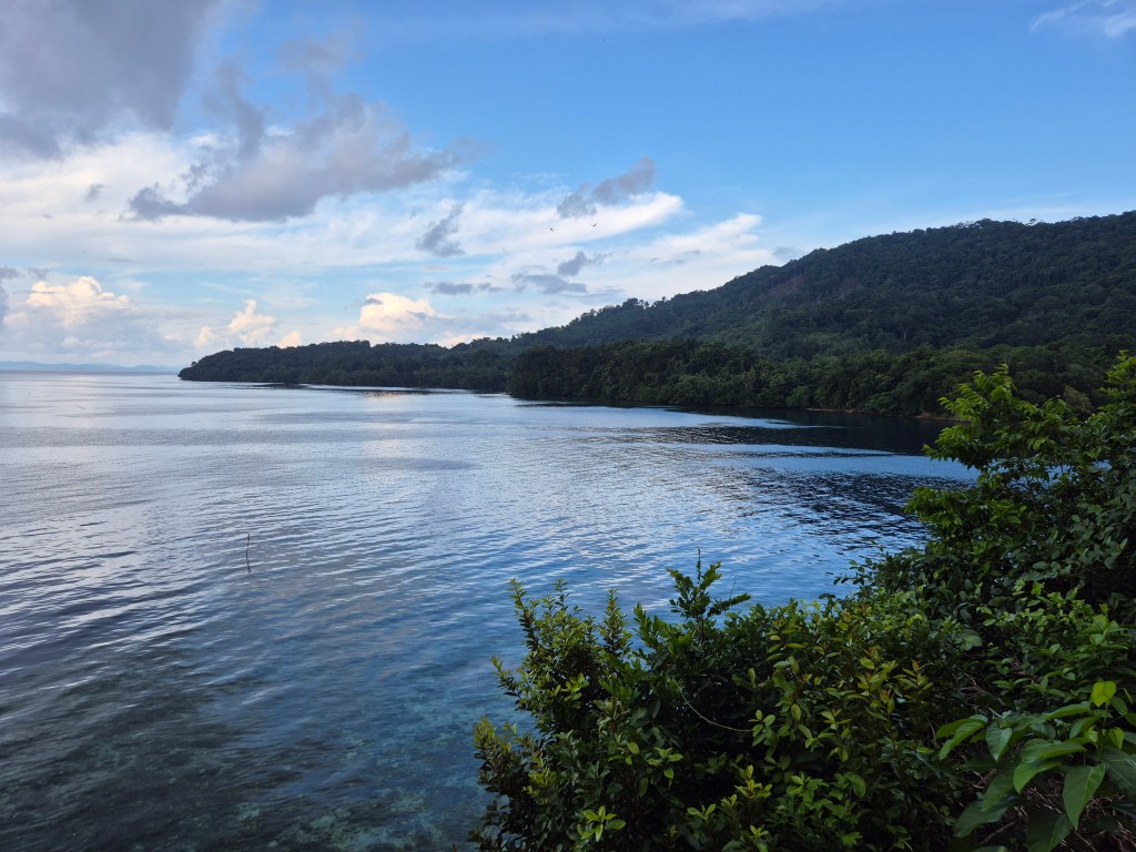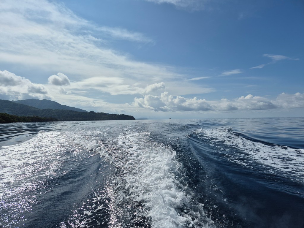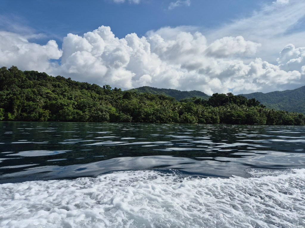 We transferred to a boat and suddenly we had space to stretch, apply suncream and enjoy a delightful trip along the pristine, forested coastline.