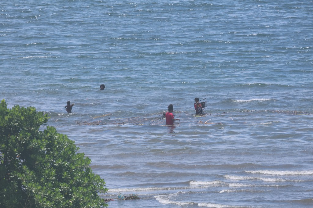 Alotau, however, was a different story, although not at first. From the ship we could see some shanty huts, many of which we saw in Port Moresby, together with children collecting firewood from the shore. As in many poor countries, firewood is the only way people can cook, making it a valuable commodity.