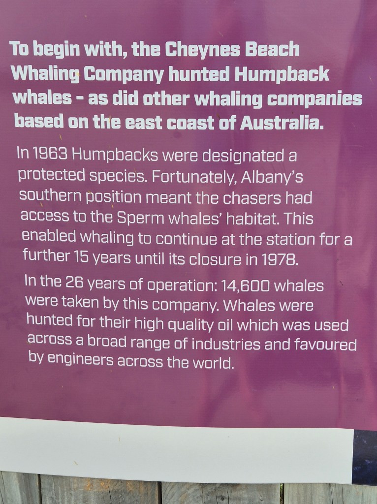 One thing we were totally unaware of is that whaling was a big industry on this coastline until the 1970s and the story of one of the biggest whaling stations is told at the Albany Historic Whaling Station. Despite the sad subject matter this was a fascinating insight into the life of a whaler and how valued the whale carcasses were regarded, in terms of the raw materials they provided and jobs they sustained. One thing that struck me was the total lack of remorse in what had happened, how humans could inflict such pain and distress on these fantastic creatures. This was encapsulated by the following poster: