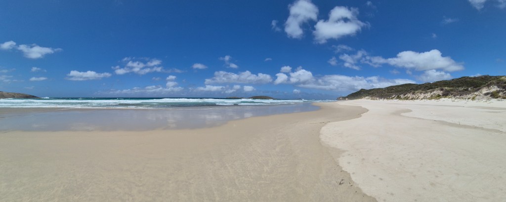 Also in Walpole is a somewhat eccentric tour guide who runs a local “ecocruise” out to a beach owned by his family. On the way there and back he talks non-stop about virtually everything, except ecology. He knows the history of the area, all the families and their connections with royalty and the Australian government and explains how Walpole was supposed to have been built in a different location which would have destroyed it’s unique character today. It was entertaining and we visited a truly fantastic beach