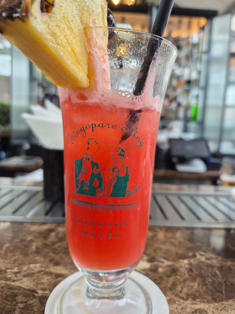 The Singapore Sling was conceived at Raffles and remains a huge tourist attraction, not that we’d be distracted from serious world-travelling by such frippery..and not forgetting to throw our peanut shells on the floor.