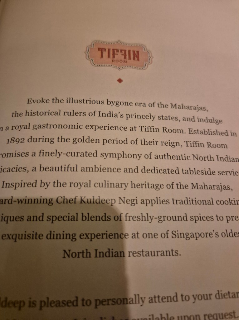 Dinner was at the equally well-known Tiffin Room in the hotel, a fabulous evening of quality Indian cuisine