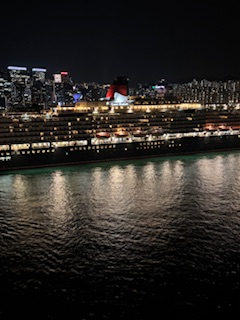 We were parked next to one of Cunards sister ship’s Queen Elizabeth and as we left their horns acknowledged each other